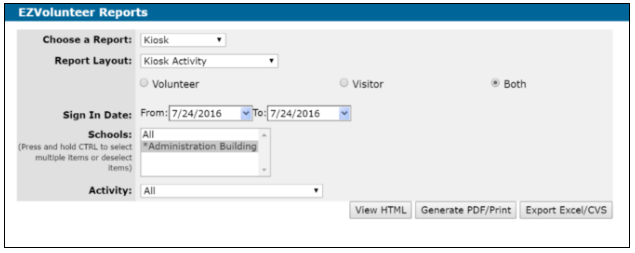 With Kiosk Reports you can limit reporting to just what is/has been happening at your EZVKiosk. If you are not using our EZVKiosk these reports are not for you. If you are then you can use them for either Volunteer or Visitor tracking, or both.